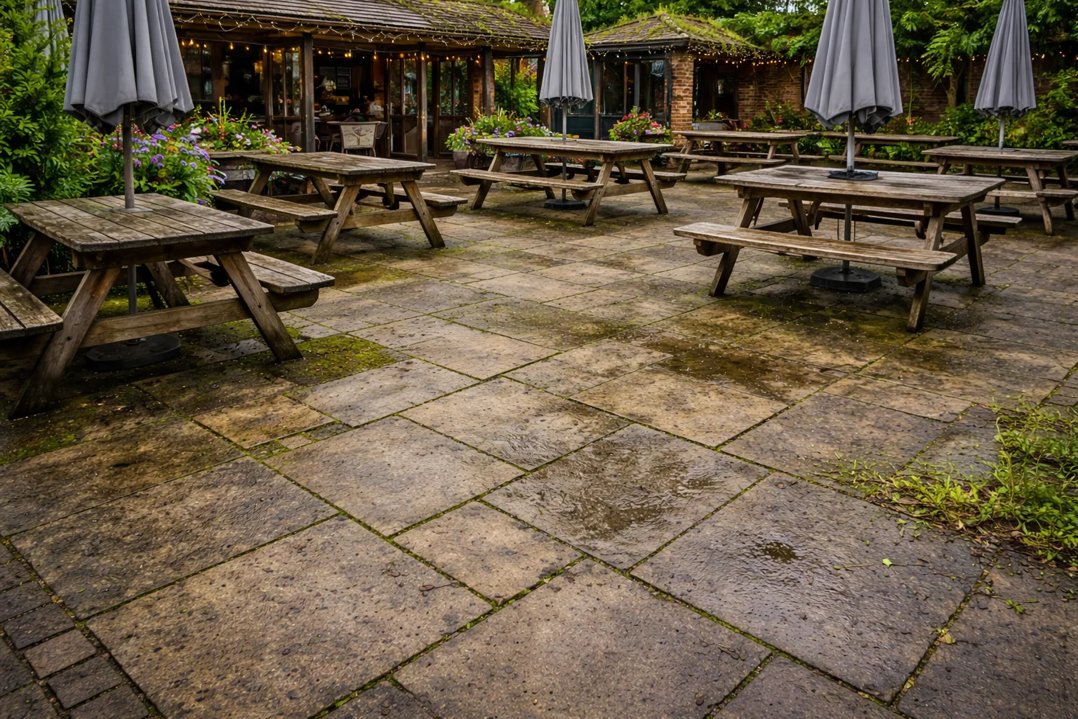 Explore before and after examples of driveway, patio, terrace and exterior surface cleaning.